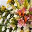 描述: 白菊、百合、当季鲜花组成花环。