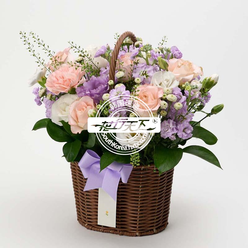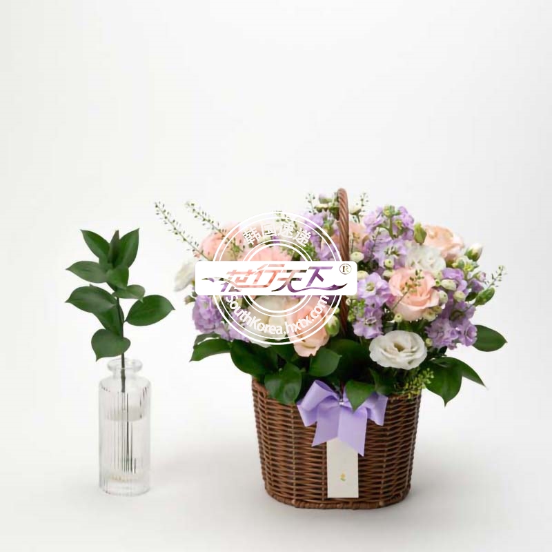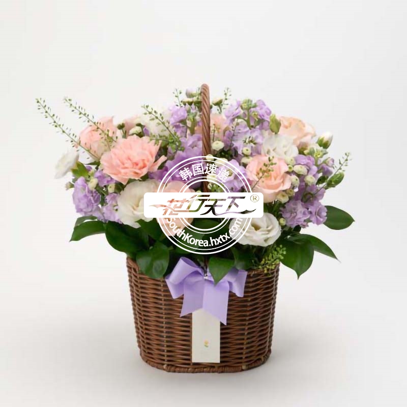 韩国提篮鲜花配送时间可选,需当天配送提篮鲜花,请在韩国时间14:00点前下好订单。