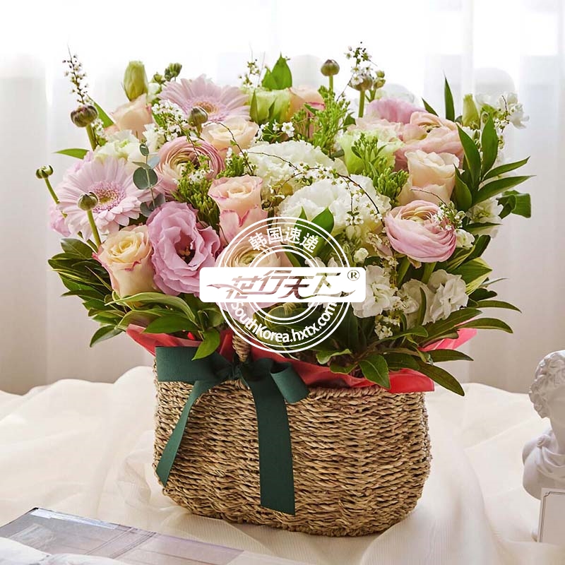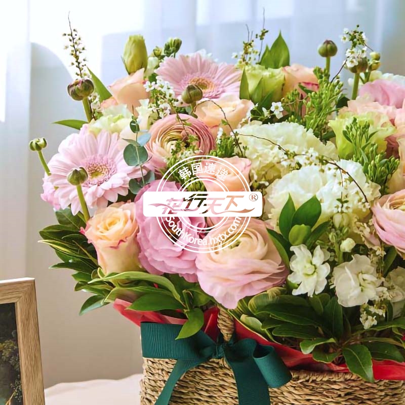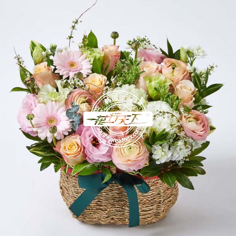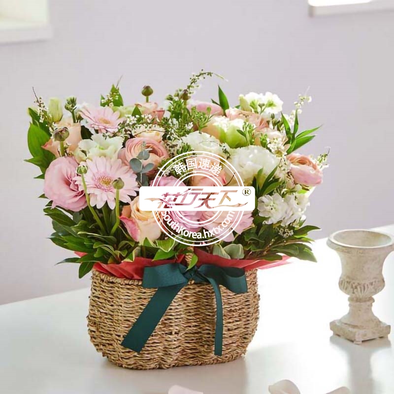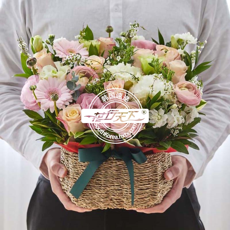 韩国提篮鲜花配送时间可选,需当天配送提篮鲜花,请在韩国时间14:00点前下好订单。