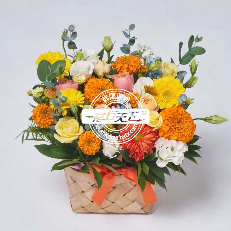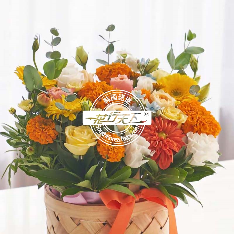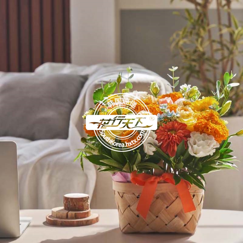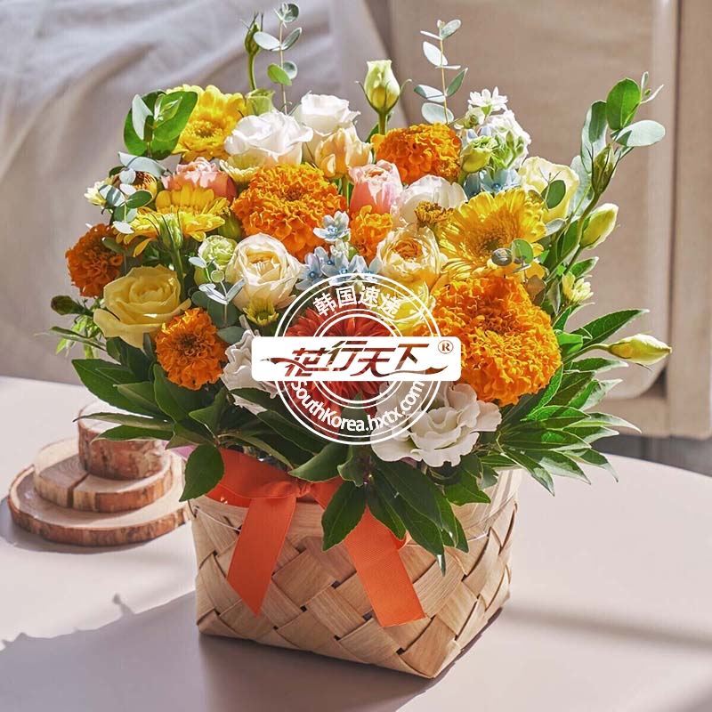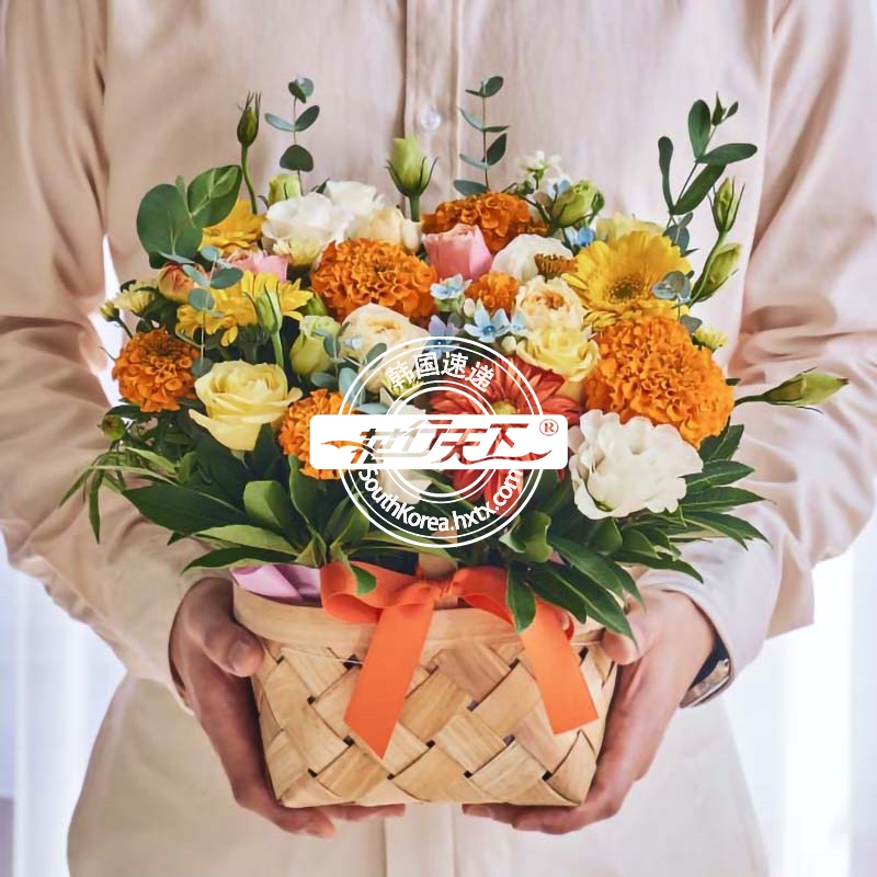 韩国提篮鲜花配送时间可选,需当天配送提篮鲜花,请在韩国时间14:00点前下好订单。