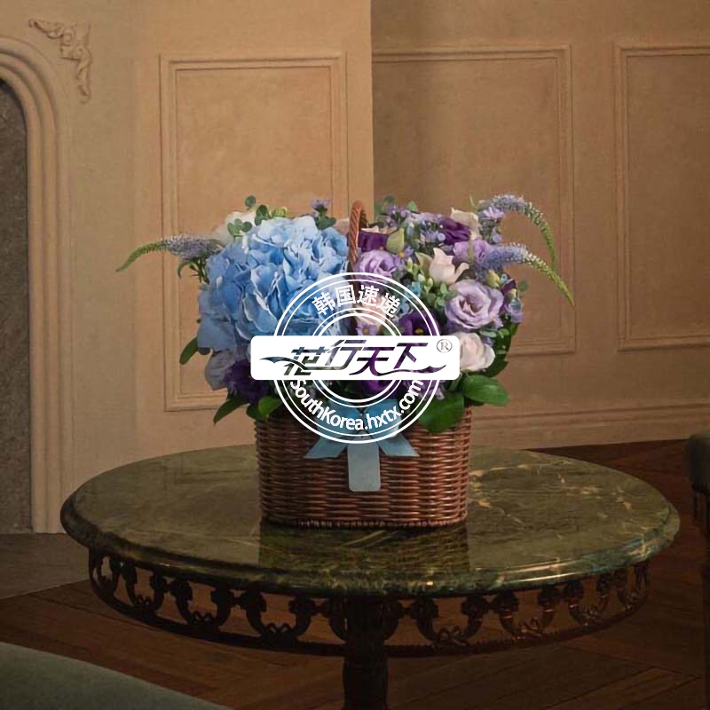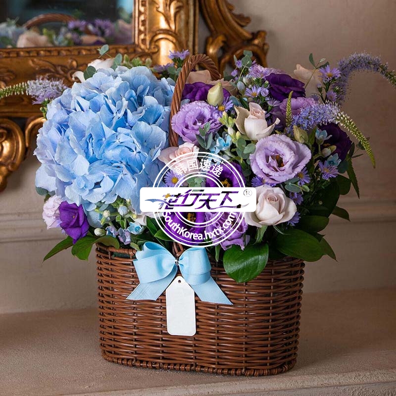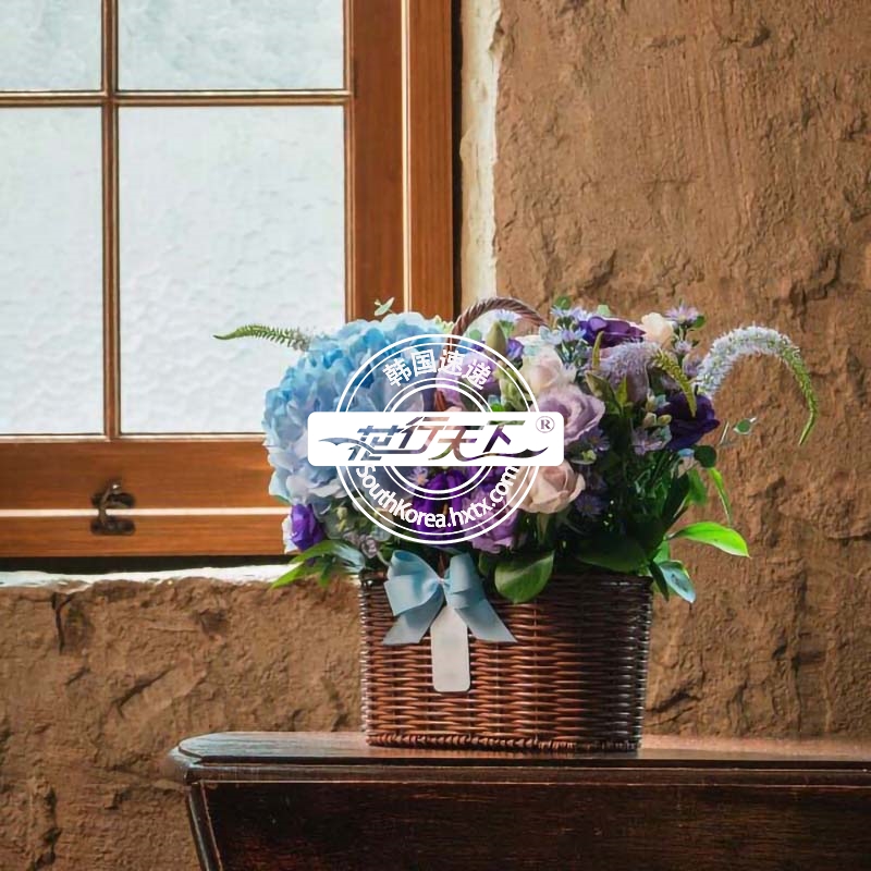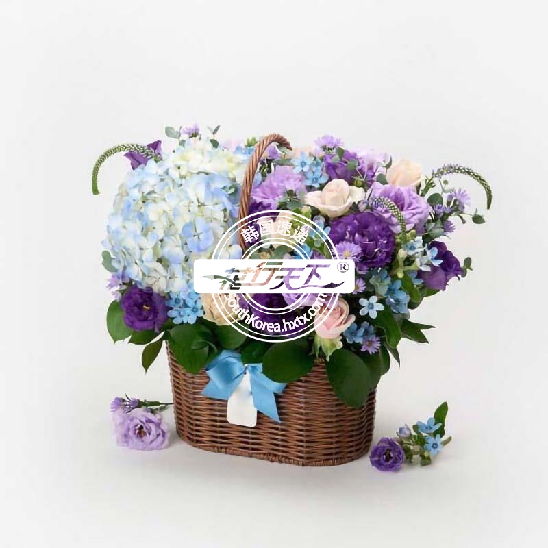 韩国提篮鲜花配送时间可选,需当天配送提篮鲜花,请在韩国时间14:00点前下好订单。