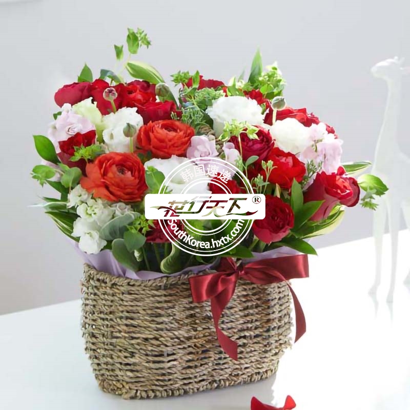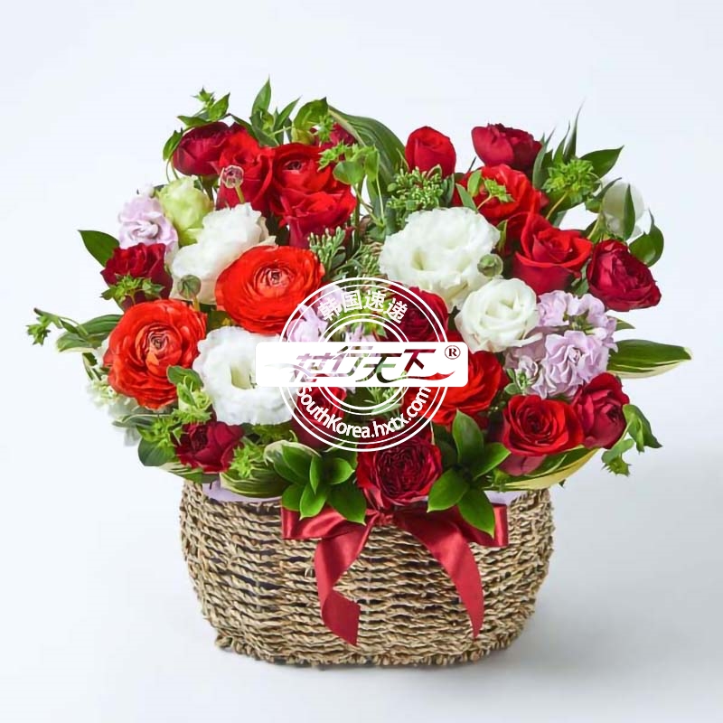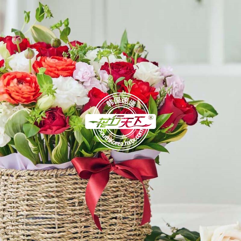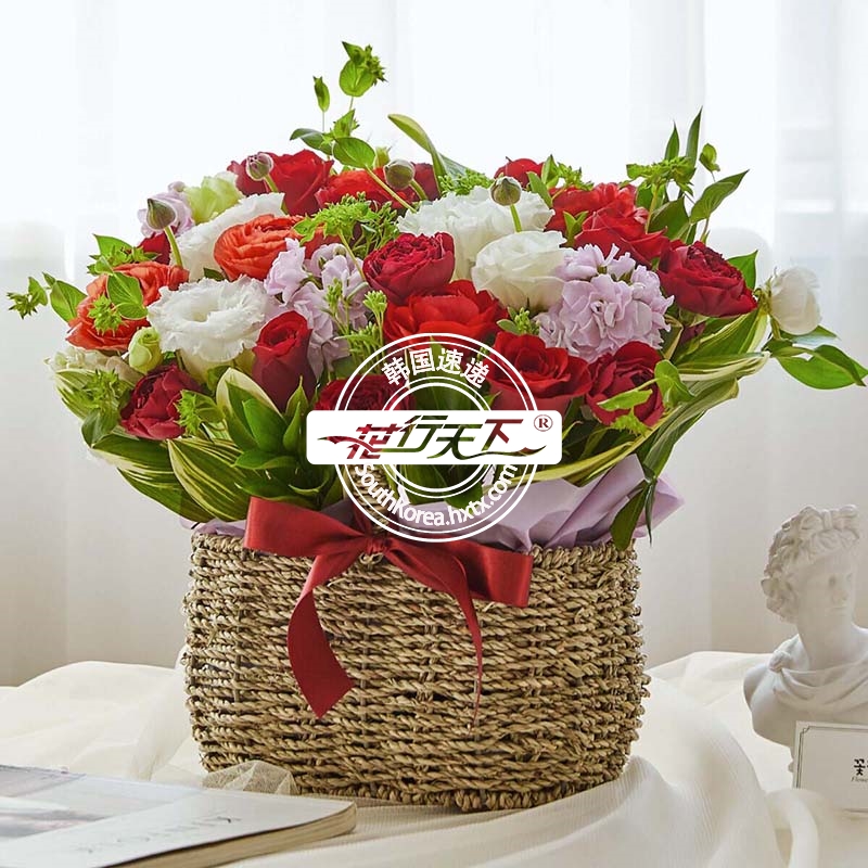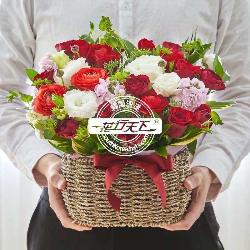 韩国提篮鲜花配送时间可选,需当天配送提篮鲜花,请在韩国时间14:00点前下好订单。