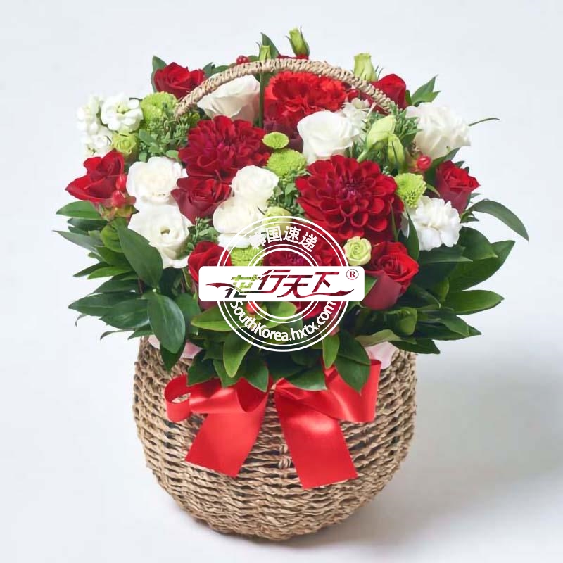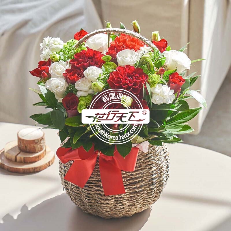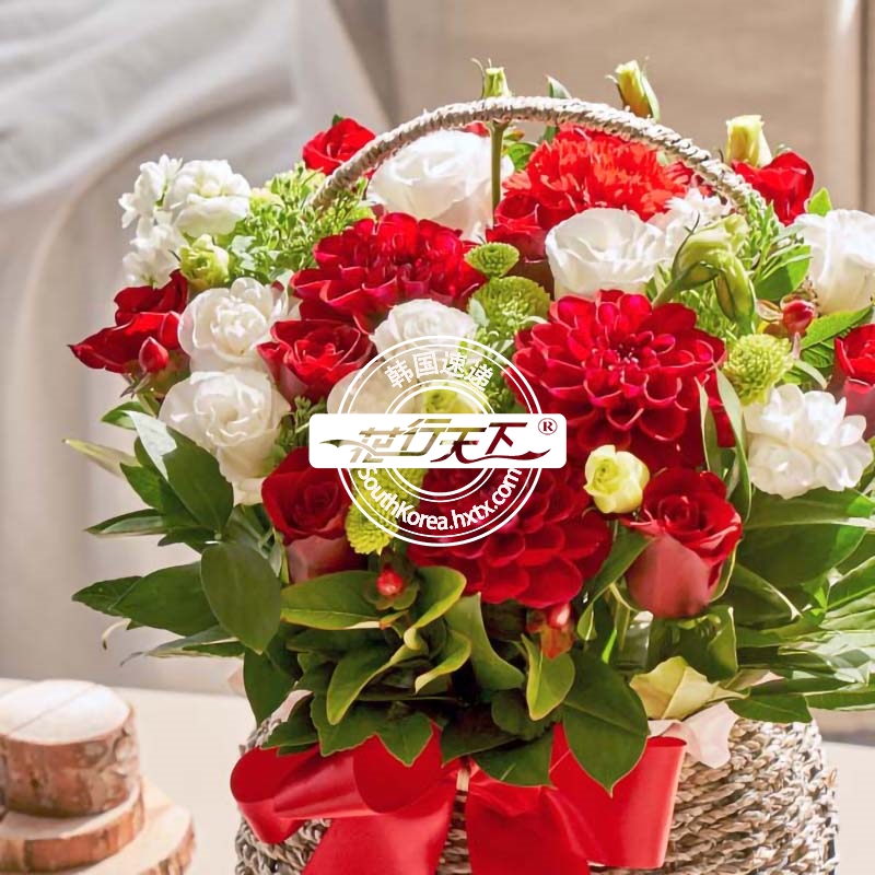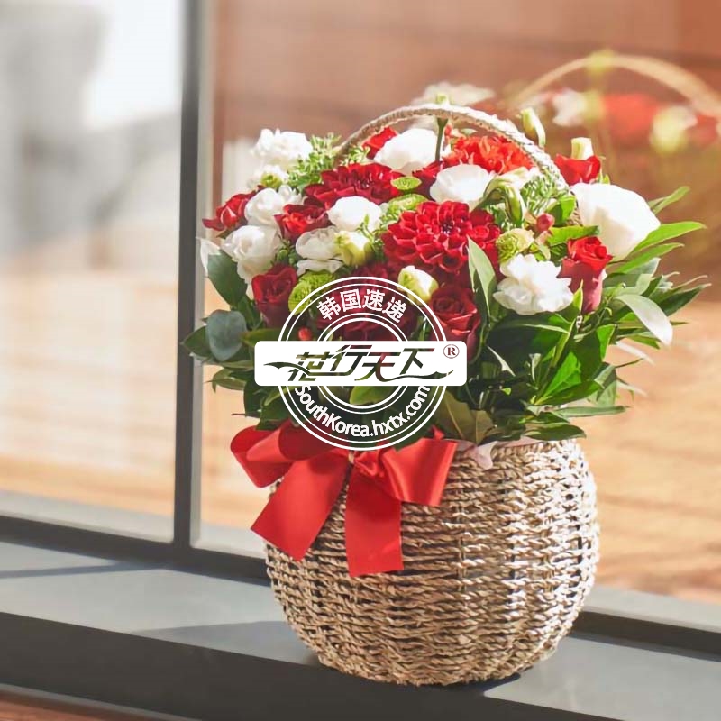 韩国提篮鲜花配送时间可选,需当天配送提篮鲜花,请在韩国时间14:00点前下好订单。