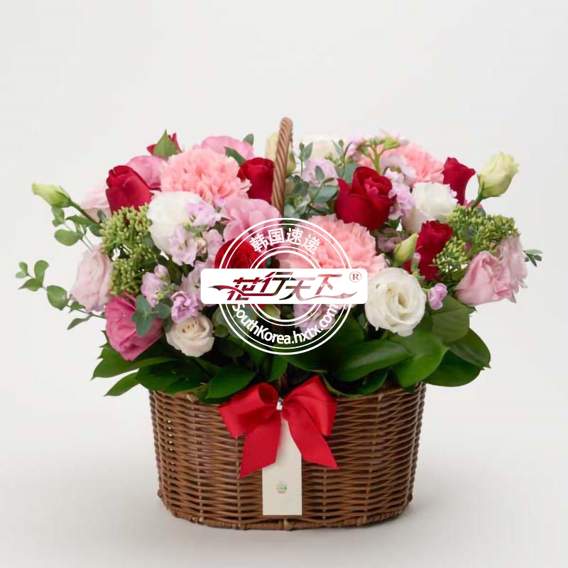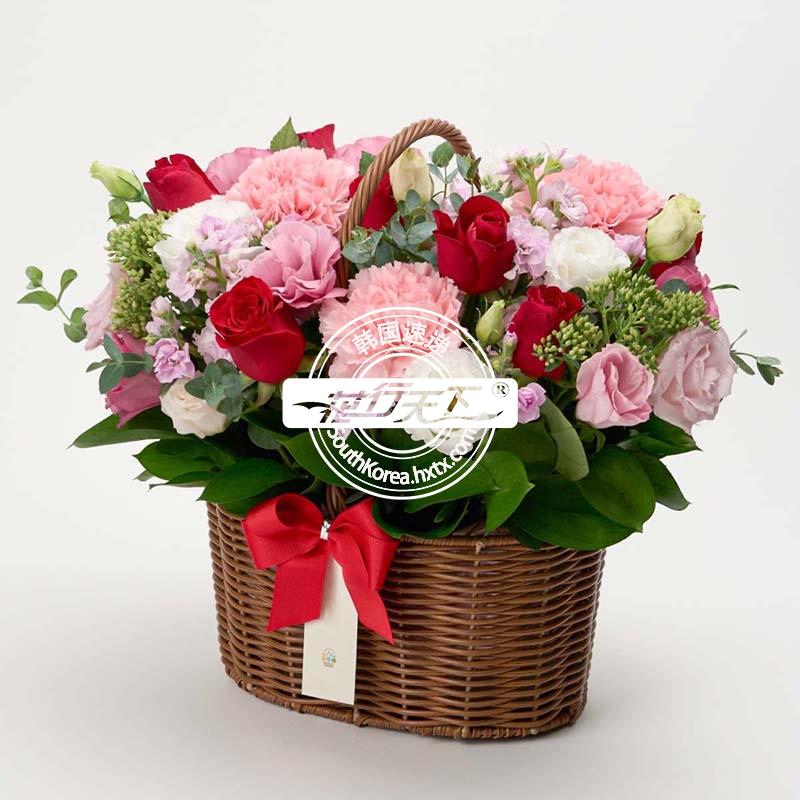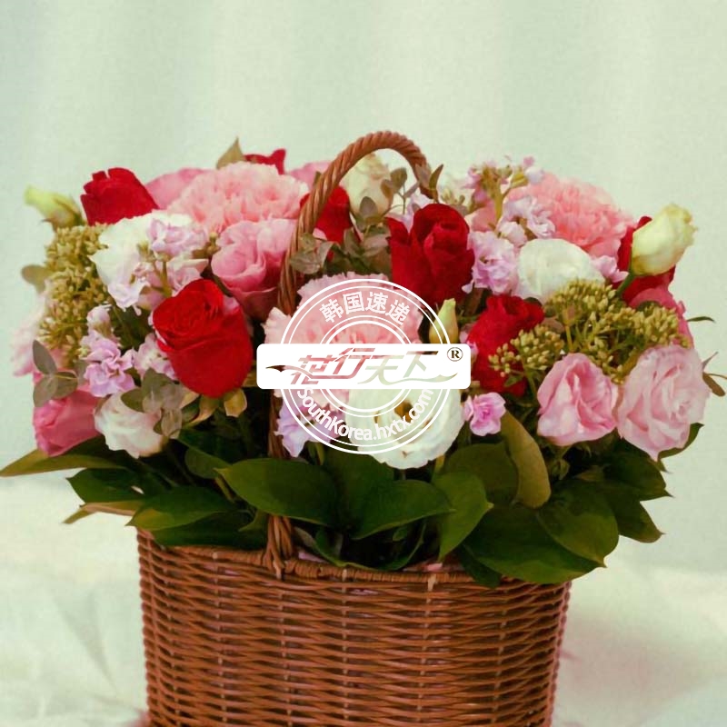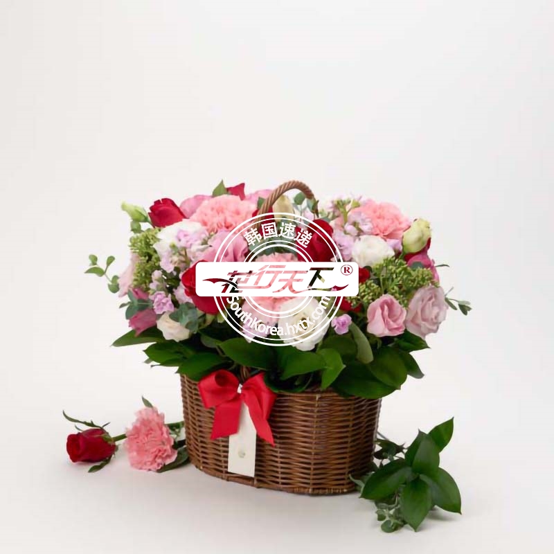 韩国提篮鲜花配送时间可选,需当天配送提篮鲜花,请在韩国时间14:00点前下好订单。